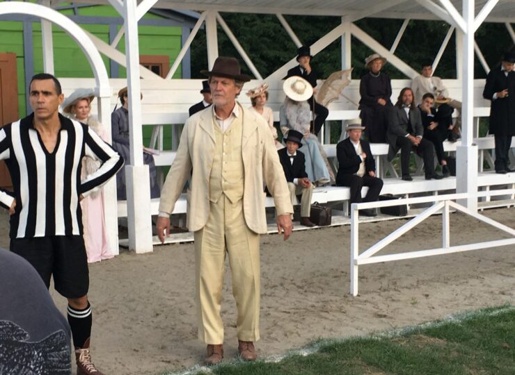 Unfortunately i wasn’t involved in the choreography, but did get to write myself into a scene on the pitch sidelines since my character wasn’t the soccer pro. I do remember when we were waiting to film i kicked the leather soccer ball numerous times tin the goal for about an hour. A totally different feel to the synthetic balls of today since the leather ball is heavier. The next day My hip flexors were in such pain i could hardly walk.